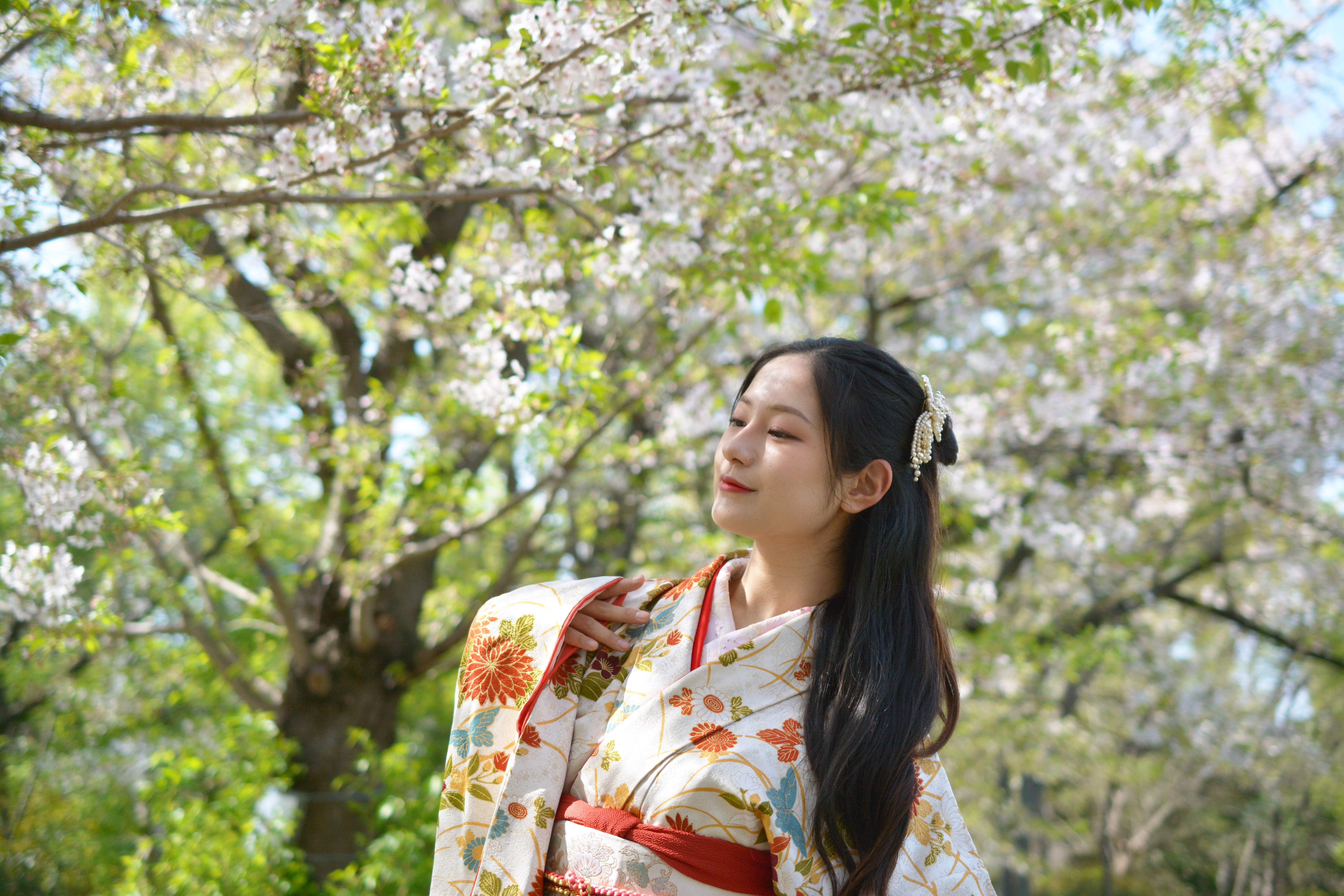 純粋無垢・夢・希望・明るい未来・桜・春・さくら・サクラ・和風・女性・和服美人・大和撫子・やまとなでしこ・きもの・和装・美女・美魔女・コスプレ・江戸時代・時代劇・覚悟・凛々しい目・瞳・お花見・はにかむ・恋愛・失恋・恋心・乙女心・べっぴんさん