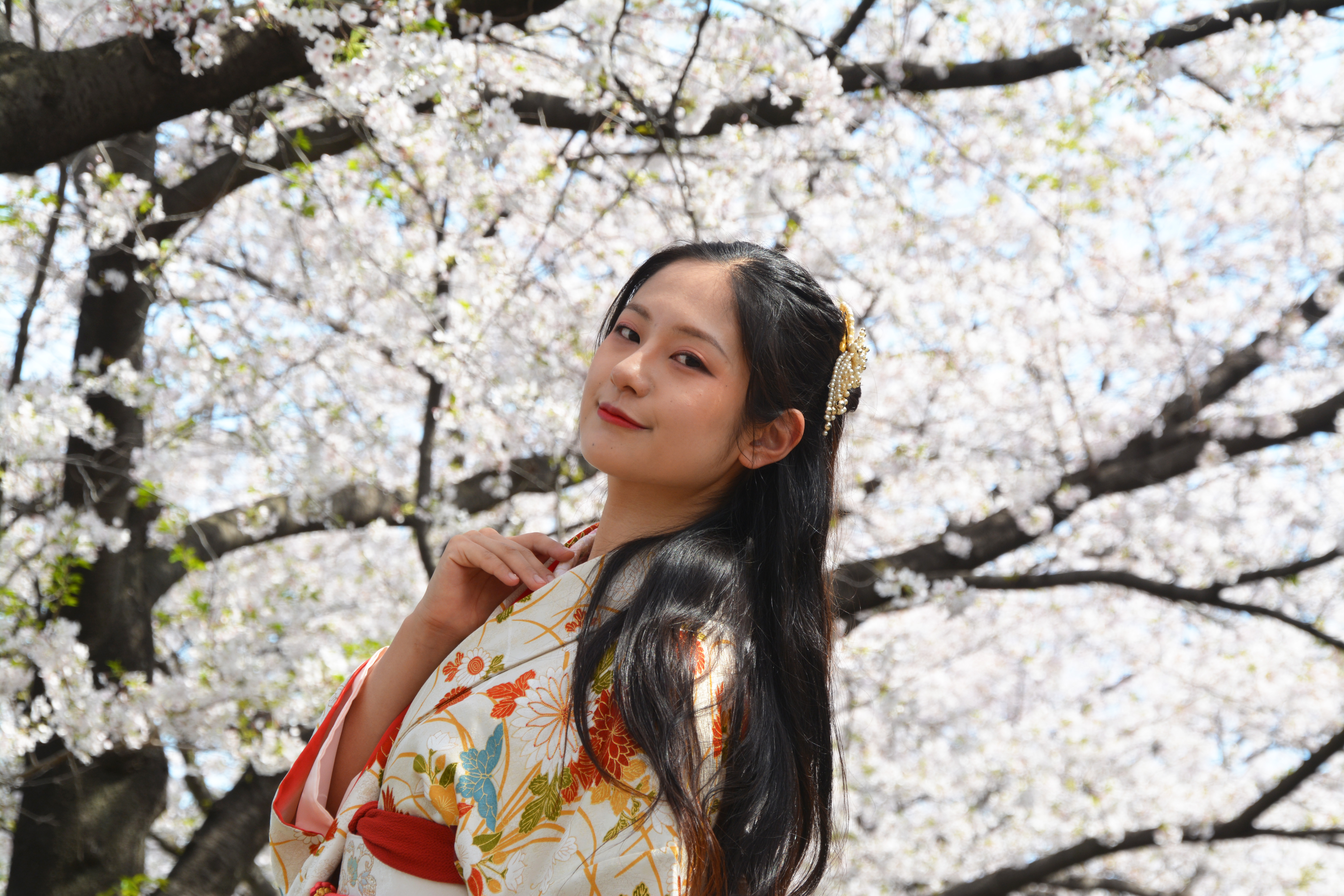 べっぴんさん・春爛漫・純粋無垢・夢・希望・明るい未来・桜・春・さくら・サクラ・和風・女性・和服美人・着物・きもの・和装・美女・美魔女・コスプレ・江戸時代・時代劇・覚悟・凛々しい目・瞳・お花見・はにかむ・恋愛・失恋・恋心・乙女心