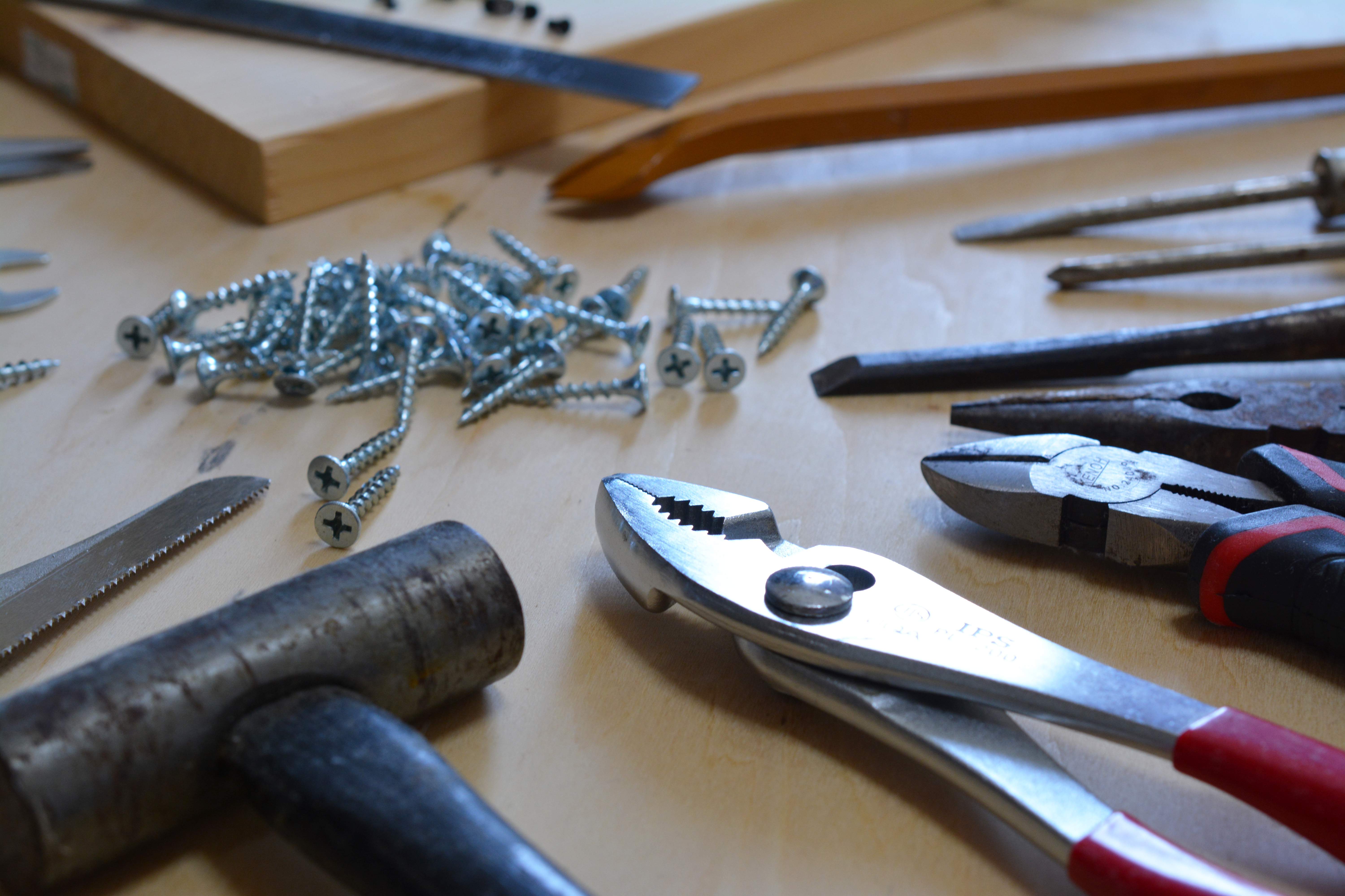 日曜大工・DIY・DIY(diy)・ねじ(ネジ)・ペンチ・トンカチ・金槌・金づち・鋸(のこぎり・ノコギリ)・修理・施工・木工作業・手作り作業・ものづくり・物作り・町工場